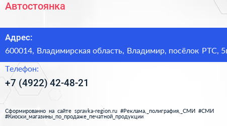 Автостоянка по адресу 600014, Владимирская область, Владимир, посёлок РТС, 5г в дальнейшем Организация, размещена в следующих категориях: