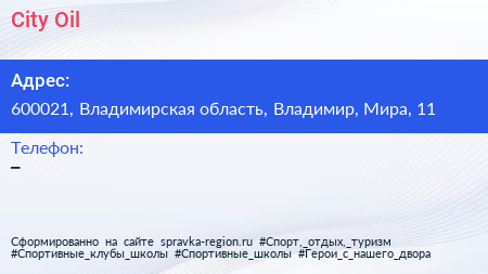 City Oil по адресу 600021, Владимирская область, Владимир, Мира, 11 в дальнейшем Организация, размещена в следующих категориях: