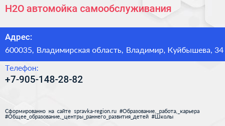 H2O, автомойка самообслуживания по адресу 600035, Владимирская область, Владимир, Куйбышева, 34 в дальнейшем Организация, размещена в следующих категориях: