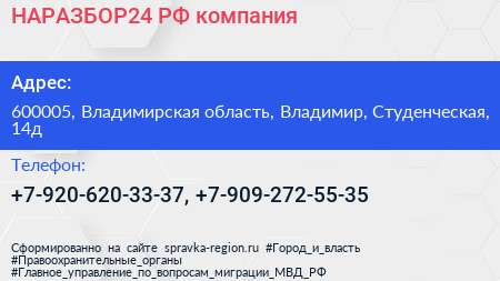 НАРАЗБОР24.РФ, компания по адресу 600005, Владимирская область, Владимир, Студенческая, 14д в дальнейшем Организация, размещена в следующих категориях: