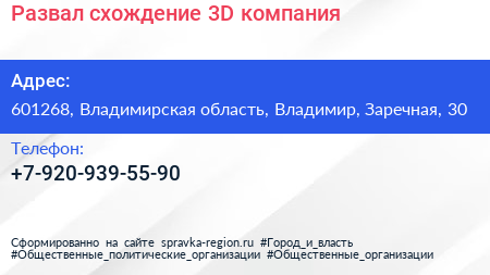 Развал-схождение 3D, компания по адресу 601268, Владимирская область, Владимир, Заречная, 30 в дальнейшем Организация, размещена в следующих категориях: