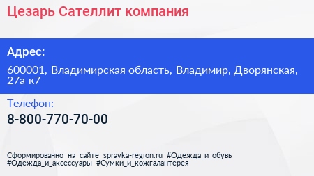 Цезарь Сателлит, компания по адресу 600001, Владимирская область, Владимир, Дворянская, 27а к7 в дальнейшем Организация, размещена в следующих категориях: