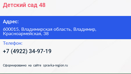 Детский сад №48 по адресу 600015, Владимирская область, Владимир, Красноармейская, 38 в дальнейшем Организация, размещена в следующих категориях: