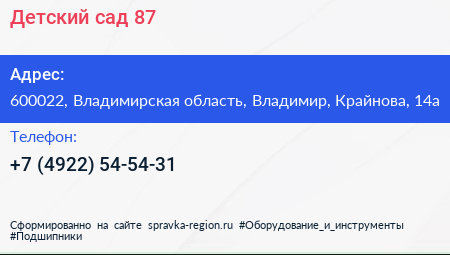 Детский сад №87 по адресу 600022, Владимирская область, Владимир, Крайнова, 14а в дальнейшем Организация, размещена в следующих категориях: