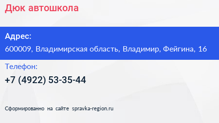 Дюк, автошкола по адресу 600009, Владимирская область, Владимир, Фейгина, 16 в дальнейшем Организация, размещена в следующих категориях: