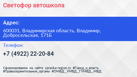 Светофор, автошкола по адресу 600031, Владимирская область, Владимир, Добросельская, 171Б в дальнейшем Организация, размещена в следующих категориях: