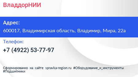 ВладдорНИИ по адресу 600017, Владимирская область, Владимир, Мира, 22а в дальнейшем Организация, размещена в следующих категориях: