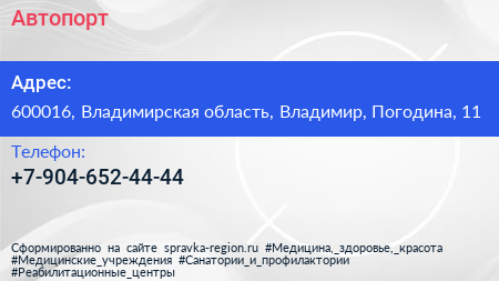 Автопорт по адресу 600016, Владимирская область, Владимир, Погодина, 11 в дальнейшем Организация, размещена в следующих категориях:
