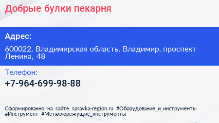 Добрые булки, пекарня по адресу 600022, Владимирская область, Владимир, проспект Ленина, 48 в дальнейшем Организация, размещена в следующих категориях: