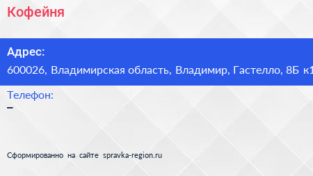 Кофейня по адресу 600026, Владимирская область, Владимир, Гастелло, 8Б к1 в дальнейшем Организация, размещена в следующих категориях:
