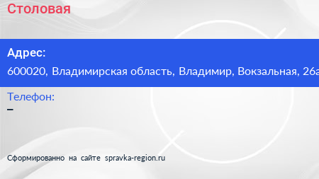 Столовая по адресу 600020, Владимирская область, Владимир, Вокзальная, 26а в дальнейшем Организация, размещена в следующих категориях: