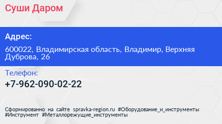 Суши Даром по адресу 600022, Владимирская область, Владимир, Верхняя Дуброва, 26 в дальнейшем Организация, размещена в следующих категориях: