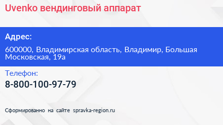 Uvenko, вендинговый аппарат по адресу 600000, Владимирская область, Владимир, Большая Московская, 19а в дальнейшем Организация, размещена в следующих категориях: