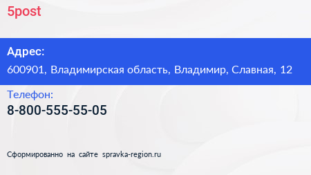 5post по адресу 600901, Владимирская область, Владимир, Славная, 12 в дальнейшем Организация, размещена в следующих категориях: