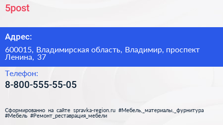 5post по адресу 600015, Владимирская область, Владимир, проспект Ленина, 37 в дальнейшем Организация, размещена в следующих категориях:
