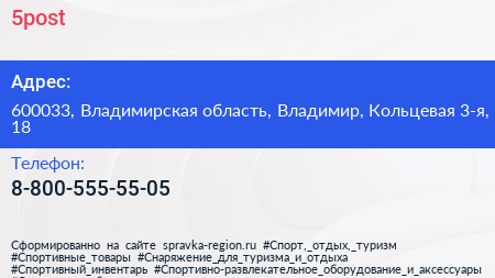 5post по адресу 600033, Владимирская область, Владимир, Кольцевая 3-я, 18 в дальнейшем Организация, размещена в следующих категориях: