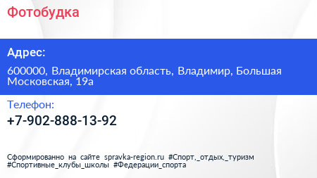 Фотобудка по адресу 600000, Владимирская область, Владимир, Большая Московская, 19а в дальнейшем Организация, размещена в следующих категориях: