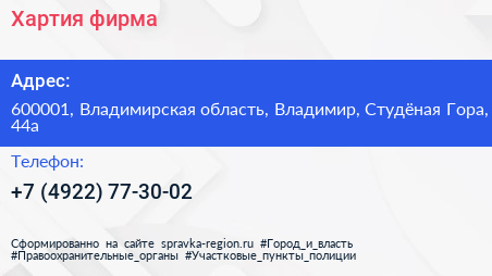 Хартия, фирма по адресу 600001, Владимирская область, Владимир, Студёная Гора, 44а в дальнейшем Организация, размещена в следующих категориях: