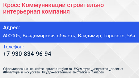 Кросс Коммуникации, строительно-интерьерная компания по адресу 600005, Владимирская область, Владимир, Горького, 56а в дальнейшем Организация, размещена в следующих категориях: