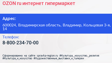 OZON.ru, интернет-гипермаркет по адресу 600024, Владимирская область, Владимир, Кольцевая 3-я, 14 в дальнейшем Организация, размещена в следующих категориях: