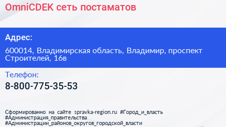 OmniCDEK, сеть постаматов по адресу 600014, Владимирская область, Владимир, проспект Строителей, 16в в дальнейшем Организация, размещена в следующих категориях: