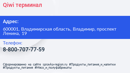 Qiwi, терминал по адресу 600001, Владимирская область, Владимир, проспект Ленина, 19 в дальнейшем Организация, размещена в следующих категориях: