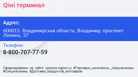 Qiwi, терминал по адресу 600015, Владимирская область, Владимир, проспект Ленина, 37 в дальнейшем Организация, размещена в следующих категориях: