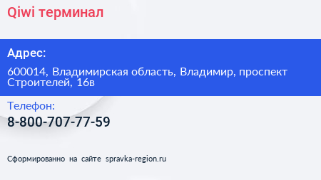Qiwi, терминал по адресу 600014, Владимирская область, Владимир, проспект Строителей, 16в в дальнейшем Организация, размещена в следующих категориях: