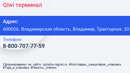 Qiwi, терминал по адресу 600026, Владимирская область, Владимир, Тракторная, 10 в дальнейшем Организация, размещена в следующих категориях: