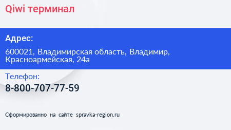 Qiwi, терминал по адресу 600021, Владимирская область, Владимир, Красноармейская, 24а в дальнейшем Организация, размещена в следующих категориях: