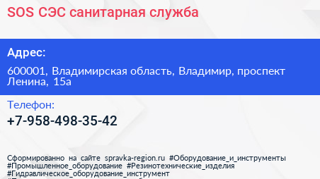 SOS СЭС, санитарная служба по адресу 600001, Владимирская область, Владимир, проспект Ленина, 15а в дальнейшем Организация, размещена в следующих категориях: