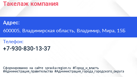Такелаж, компания по адресу 600005, Владимирская область, Владимир, Мира, 15Б в дальнейшем Организация, размещена в следующих категориях: