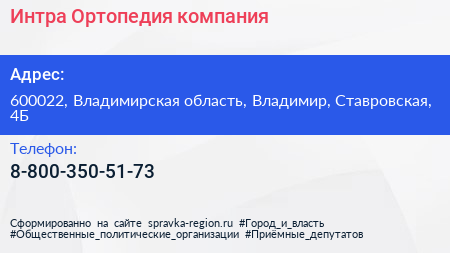 Интра-Ортопедия, компания по адресу 600022, Владимирская область, Владимир, Ставровская, 4Б в дальнейшем Организация, размещена в следующих категориях: