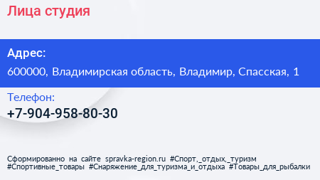 Лица, студия по адресу 600000, Владимирская область, Владимир, Спасская, 1 в дальнейшем Организация, размещена в следующих категориях: