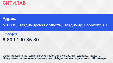 СИТИЛАБ по адресу 600005, Владимирская область, Владимир, Горького, 81 в дальнейшем Организация, размещена в следующих категориях: