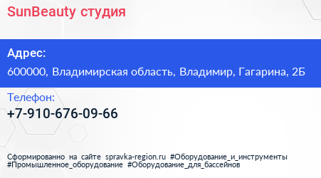 SunBeauty, студия по адресу 600000, Владимирская область, Владимир, Гагарина, 2Б в дальнейшем Организация, размещена в следующих категориях: