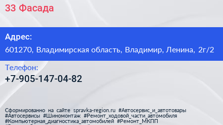 33 Фасада по адресу 601270, Владимирская область, Владимир, Ленина, 2г/2 в дальнейшем Организация, размещена в следующих категориях: