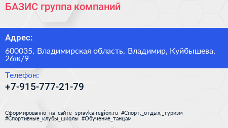 БАЗИС, группа компаний по адресу 600035, Владимирская область, Владимир, Куйбышева, 26ж/9 в дальнейшем Организация, размещена в следующих категориях: