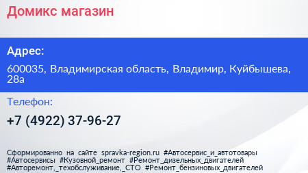 Домикс, магазин по адресу 600035, Владимирская область, Владимир, Куйбышева, 28а в дальнейшем Организация, размещена в следующих категориях: