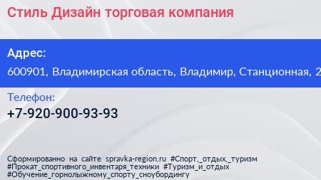 Стиль Дизайн, торговая компания по адресу 600901, Владимирская область, Владимир, Станционная, 2 в дальнейшем Организация, размещена в следующих категориях: