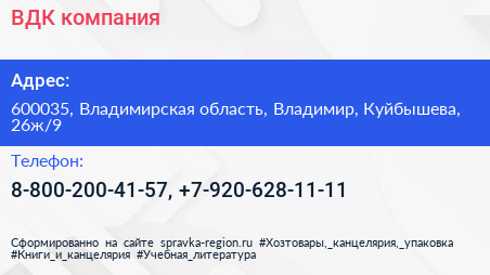ВДК, компания по адресу 600035, Владимирская область, Владимир, Куйбышева, 26ж/9 в дальнейшем Организация, размещена в следующих категориях:
