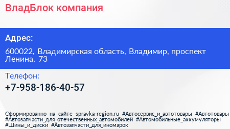 ВладБлок, компания по адресу 600022, Владимирская область, Владимир, проспект Ленина, 73 в дальнейшем Организация, размещена в следующих категориях:
