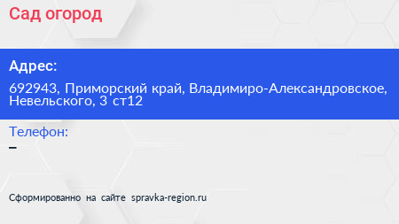 Адрес: Приморский край, Владимиро-Александровское, Садовая, 5а