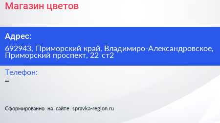 Магазин цветов по адресу 692943, Приморский край, Владимиро-Александровское, Приморский проспект, 22 ст2 в дальнейшем Организация, размещена в следующих категориях: