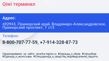 Qiwi, терминал по адресу 692943, Приморский край, Владимиро-Александровское, Приморский проспект, 7 ст3 в дальнейшем Организация, размещена в следующих категориях: