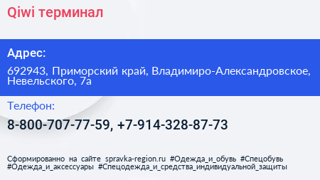 Qiwi, терминал по адресу 692943, Приморский край, Владимиро-Александровское, Невельского, 7а в дальнейшем Организация, размещена в следующих категориях: