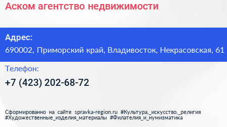 Аском, агентство недвижимости по адресу 690002, Приморский край, Владивосток, Некрасовская, 61 в дальнейшем Организация, размещена в следующих категориях: