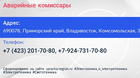 Аварийные комиссары по адресу 690078, Приморский край, Владивосток, Комсомольская, 3 в дальнейшем Организация, размещена в следующих категориях: