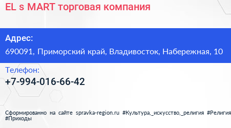EL`s MART, торговая компания по адресу 690091, Приморский край, Владивосток, Набережная, 10 в дальнейшем Организация, размещена в следующих категориях: