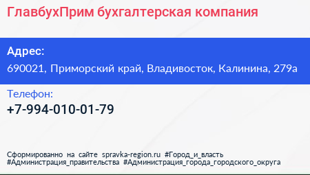 ГлавбухПрим, бухгалтерская компания по адресу 690021, Приморский край, Владивосток, Калинина, 279а в дальнейшем Организация, размещена в следующих категориях: